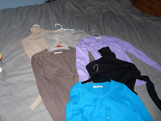 I have not published day 2 as it was kind of the same as day 1 : I bought the pants in grey-blue and purple and cardigans in all the colors I could find ! So Day2 was purple day !