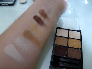 My love for the Vanity Palette from Wet&Wild is not fading ! As I go to places for work where I don't know how they feel about make up , this one is the perfect pick... In the look I did that day, I used the shimmery white (inner corner) the yellow gold (all over the lid), shimmery brown (outer V), medium matte brown (crease), matte beige mixed with the shimmery white (highlight), a little bit of the matte brown to give depth in the outer corner and a little bit on the lower lash line... I used EVERY single color !